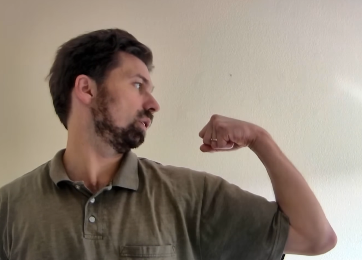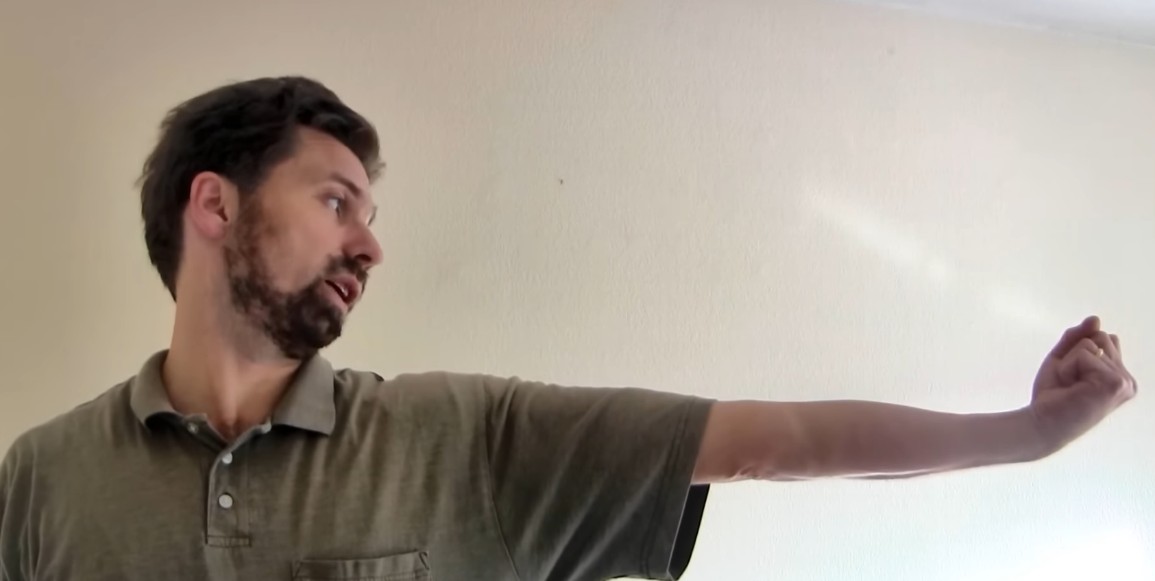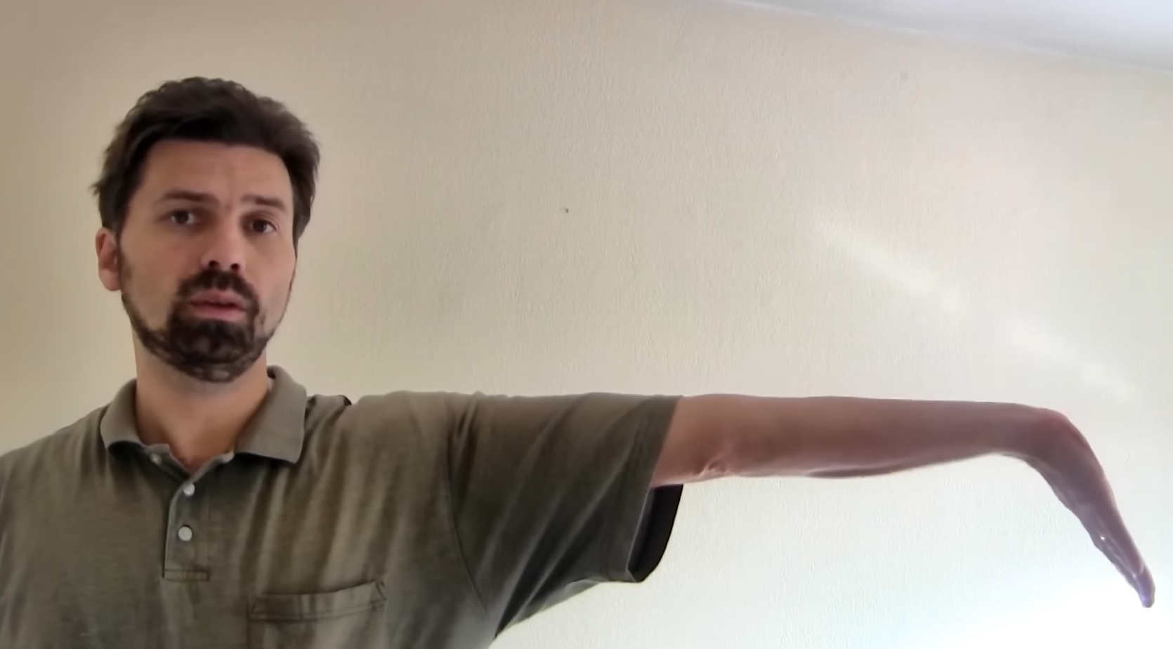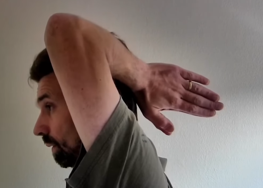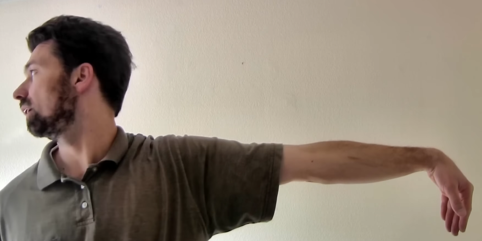 - Arm outstretched to the side, upwards fist, look towards your fist